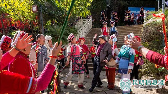 昆明信息港讯 2017年末,中国首部讲述城市少数民族生活、反映当代各族人民守望相助、共同奋进的电视剧——《都是一家人》,在云南临沧市沧源佤族自治县翁丁佤寨正式开机,山寨高龄老人和各民族群众代表,敲起木鼓、举起米酒,高歌祝福、载歌载舞,欢聚一堂。