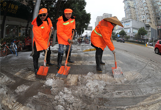 新华社北京1月30日电 记者周楠 甘泉 唐弢 廖君 邬慧颖 朱翃 李伟 18个小时,终于通了!邱庆耀红着眼从铲车下来,望着武汉东风大道高架上车来车往笑了。自此轮寒流来袭,这位43岁的沌阳街环卫队队长已经连续工作了5天。