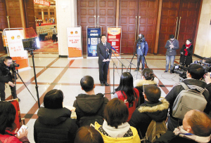市政府党组成员、市发改委主任王冰在“直通两会新闻角”答记者问。昆明日报全媒体记者李海曦/摄