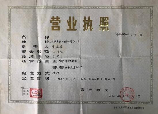 为了能更为长远的发展,1984年,罗涌戬回到四川,参加了由当地工商管理局组织的专业考试,成为了第一批拿到有资格证的修表匠。带着资格证,罗涌戬再次来到云南,在曲靖会泽矿山镇租了个9平方米的小门面,除了修表外,还卖起了手表,附带卖些表带、打火机,成为会泽矿山镇第一批有营业执照的修表匠。
