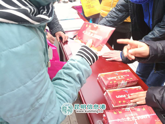 昆明信息港讯 记者杨炎 通讯员赵茜 2月6日,《2018晋宁区文化惠民消费券》在文化科技卫生法律“四下乡”启动仪式上正式向市民免费发放。消费券发放时间2月6日至2月28日,市民可通过多种方式,凭身份证实名登记在本辖区内领取。