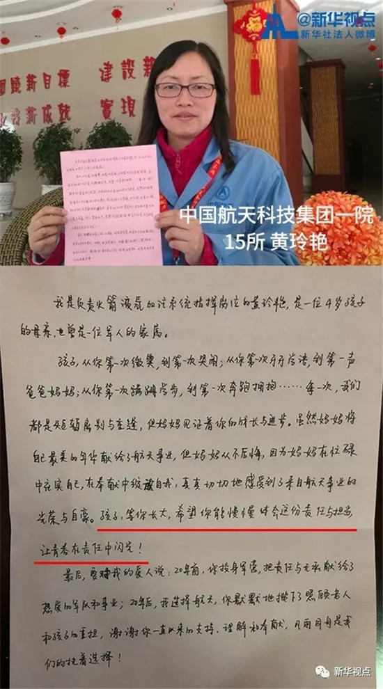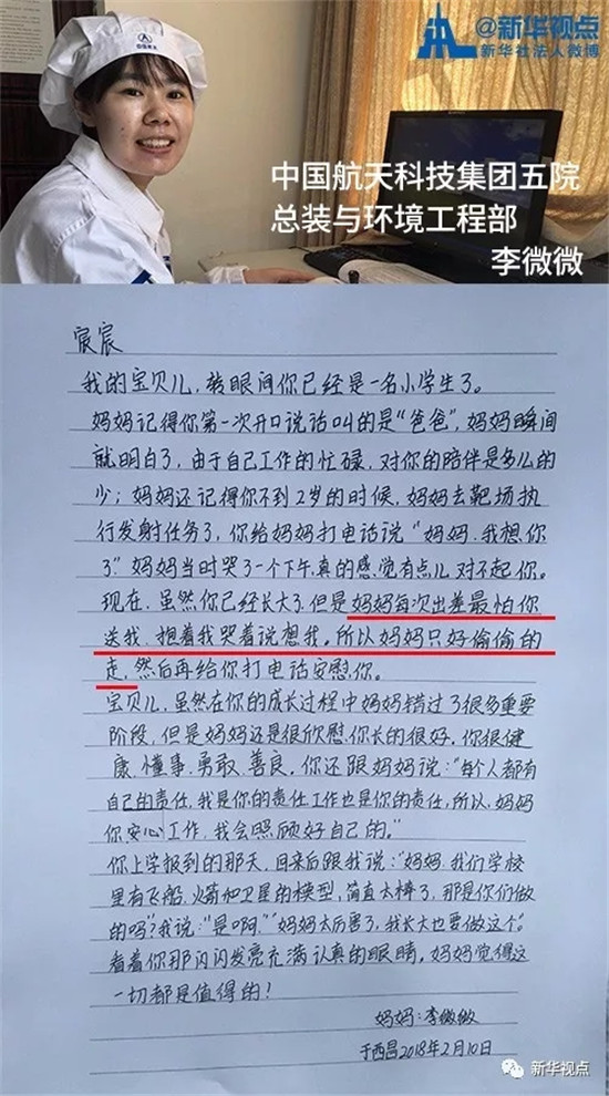 “妈妈把最好的时光献给祖国的航天事业,这份光荣与自豪是妈妈送给你最宝贵的礼物。”
