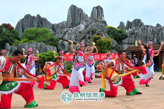 昆明信息港讯 瑞犬纳福,新春将至。这个春节,石林景区为广大游客准备了欢乐的“闹春”活动。来自石林民间的演员们击鼓舞狮、谈琴对歌、歌舞迎宾、文艺展演……丰富多彩的活动将为您呈现一幅绚丽动人的民族风情画卷。更重要的是,一大波优惠福利强势来袭: