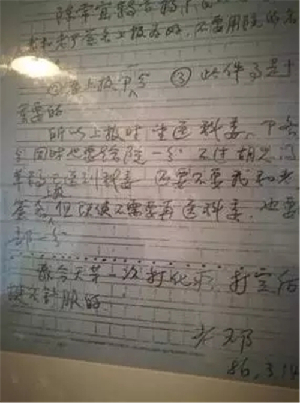 上面是另一张邓稼先的手稿,里面对病情也只说了一句话,“今天我打了化疗,打完挺不舒服的”。可能这是记者见到的,这位科学大家第一次,向别人表达自己的病痛。而其他时间,他说的依旧只有工作。