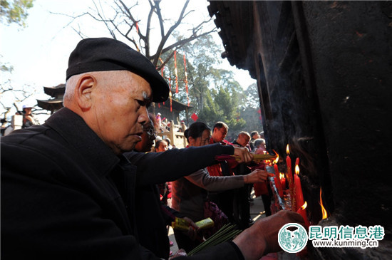 市民敬奉香火,祈福新春。昆明日报记者杨艳辉摄