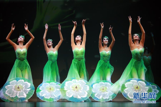 2月24日,在美国休斯敦举行的“文化中国·四海同春”演出中,演员表演舞蹈《茉莉花开》。由中国国务院侨办主办的“文化中国·四海同春”慰侨演出24日在美国第四大城市休斯敦举行,为当地华侨华人和民众送去新春问候和祝福。新华社发(钟佳摄)