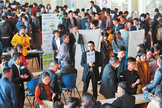 日前,昆明市2018年“春风行动”正式启动。据了解,2月22日至27日,南坝人力资源市场已累计有2600多家企业入场招聘,25000名求职者入场求职,和去年同期相比双双增长。(云南日报记者 陈飞 摄)
