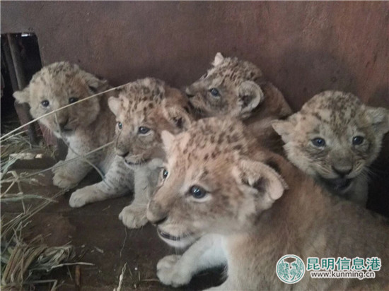 2018年1月19日,昆明动物园非洲狮“当当”顺利产下5只小狮,小狮出生后一直与其母亲在内室进行饲养观察,未对外展出。现小狮已满月,体重也从出生时的2.5公斤增加到了6公斤,身体状况良好。