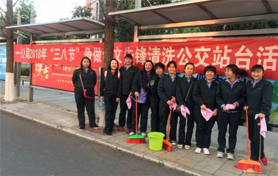 昆明信息港讯 记者李金梓 通讯员俞燕辉 今年是第108个“三八”国际妇女节,也是第55个“学雷锋”纪念日。为了弘扬雷锋精神的同时,让女职工度过一个具有特别意义的节日,3月5日—7日期间,昆明公交一公司积极组织公司女职工开展“争做创文先锋 清洗公交站台”活动。