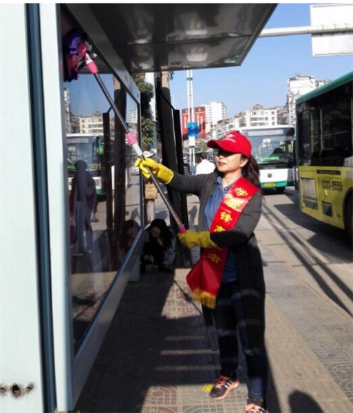 昆明公交一公司开展“争做创文先锋 清洗公交站台”活动
