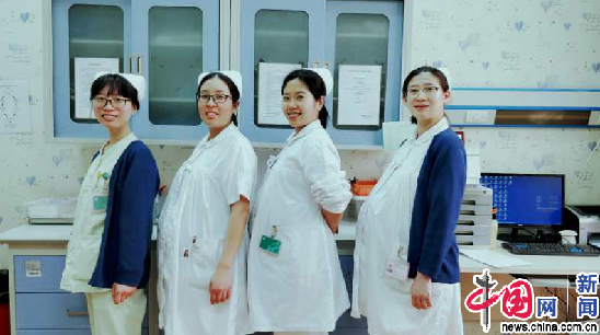 2018年2月的最后一天,南区儿科门诊的孙悦将上完产前的最后一个班,肚子里的宝宝已经满38周了,宝宝陪着妈妈和妈妈的同事们共同度过了艰难的流感季。恰巧儿科门诊其他的三个准妈妈也上白班,为了纪念这个忙碌的冬季,洪亮医生为她们拍下了一张合影。