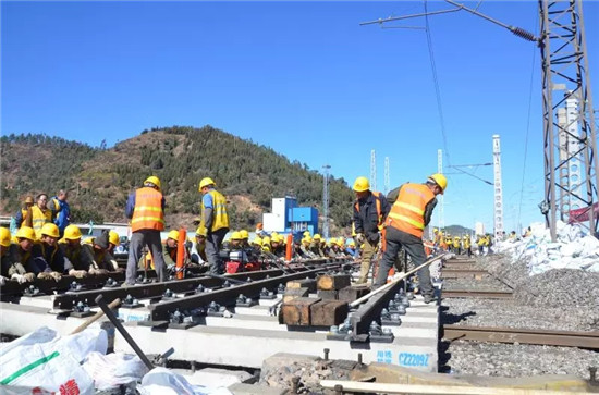 相关负责人说,全线桥梁下部工程已全部完工,祥和隧道于2月6日贯通,T梁架设2月15日全部完成;正线铺轨完成92.37%;全线站房土建、装修已进入收尾阶段。