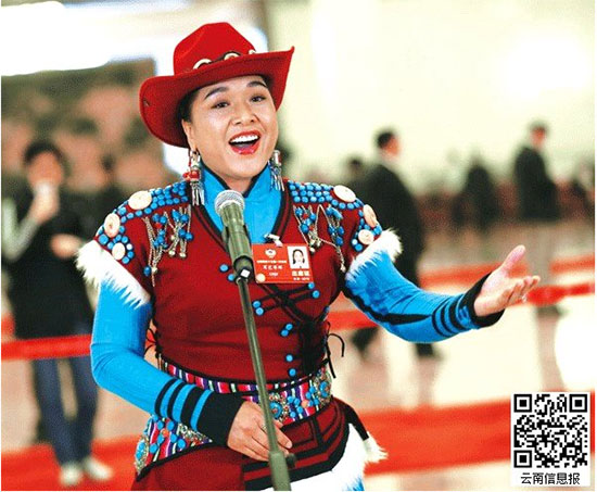 在全国政协十二届四次会议上她作了大会发言,其中谈及怒江各民族和谐共处、视国家为最大认同的真情实感,带着“泥土的芬芳”引起现场2200多名政协委员强烈共鸣,赢得了热烈的掌声。