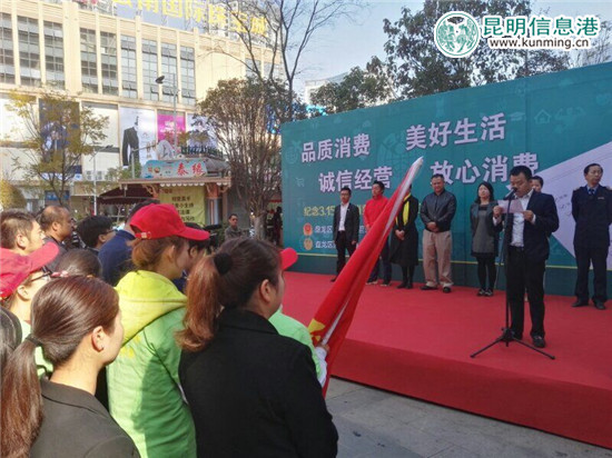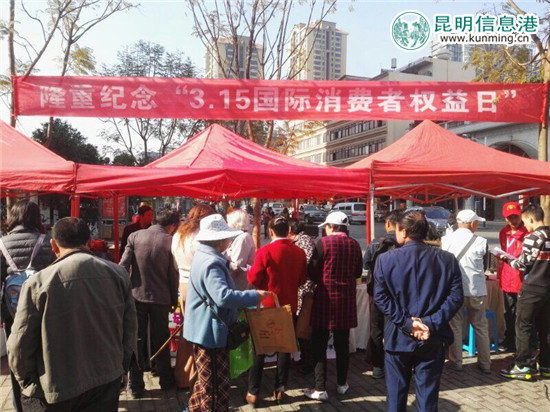 昆明信息港讯 记者李红鸾 3月15日,盘龙区在奥斯迪广场举办“3.15国际消费者权益日”集中宣传活动,旨在倡导经营者以品质消费为指引,不断提升产品和服务品质,引导消费者树立品质消费理念,追求绿色、协调、共享的消费观念,强化消费者在便捷安全放心的消费环境中逐步提升幸福感和获得感,实现对美好生活的向往。