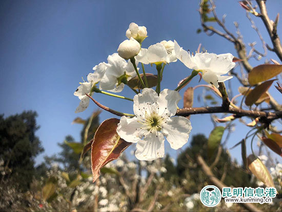 昆明信息港讯 记者马文焘 “忽如一夜春风来,千树万树梨花开。”3月18日,“相约秋木箐 共享梨花宴”2018第四届秋木箐梨花节在昆明马金铺一丘田秋木箐宝珠梨庄园启动。活动从18日持续至19日为期两天,除了赏花、拍花、踏青之外,市民们还能品尝当地特色小吃,参加摄影比赛。