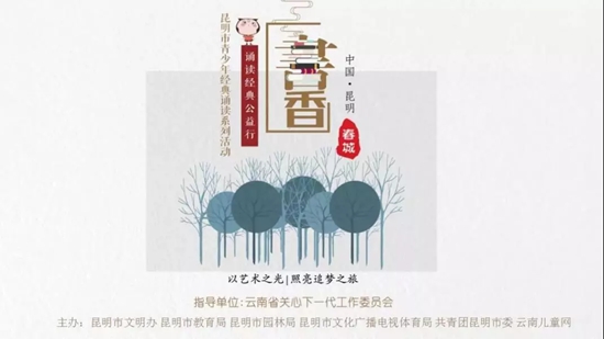作为以声音沟通心灵桥梁,以诵读感受城市文化精神的系列活动,2017年《书香春城 经典诵读公益行》昆明市青少年诵读经典系列活动从昆明大观楼的五百里滇池出发,走过了讲武堂的百年风云,走进了郑和故乡晋宁,体会大山到大海的博大胸怀,走入了昆明书城和多所昆明市中小学和大学的校园,用诵读经典的方式,一起了解昆明这座城市的历史和文化,体会城市精神。活动中昆明市多所中小学、幼儿园和大学相继参与了活动,为广大市民呈现了许多精彩的诵读节目。