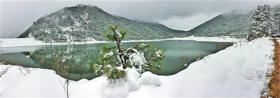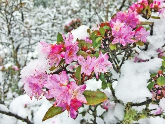玉龙雪山降大雪 杜鹃花上盖“银毯”