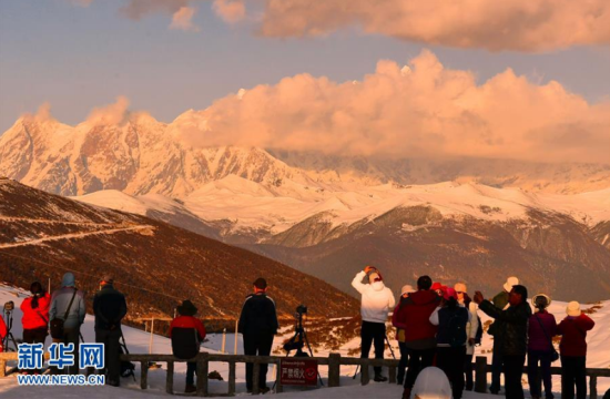 众多摄影爱好者静待南迦巴瓦峰露真容(4月2日摄)。春日,常年云雾缭绕的南迦巴瓦峰时而露出真容,吸引大批游客驻足拍摄。西藏林芝市的南迦巴瓦峰地处横断山脉、喜马拉雅山脉和念青唐古拉山脉的交汇处,其巨大的三角形峰体终年积雪,云雾缭绕,从不轻易露出真面目,所以它也被称为“羞女峰”。新华社记者张汝锋 摄