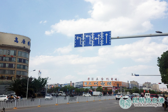 4月9日,网友发现之前不合理的车道已经得到整改,优化后的车道设置,从一条左转掉头道,变更为两条左转车道加一条左转直行车道,基本上一个信号灯就能通过,于是发帖表扬昆明交警。