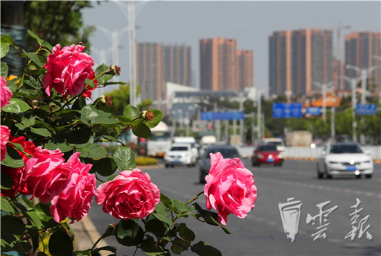“月季树”是经过嫁接的高桩月季观赏花木,植株高、花型大,作为沿街绿化花木具有更好的观赏性。目前在昆明广福路、北京路等主要城区路段均采用这种“月季树”作为绿化花木,为春城昆明营造出一条条名副其实的鲜花大道,也为春城花都增添了靓丽的景致。(云南日报记者 杨峥)