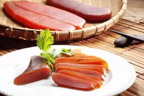 乌鱼子是雌乌鱼的卵制作的,风味独特,