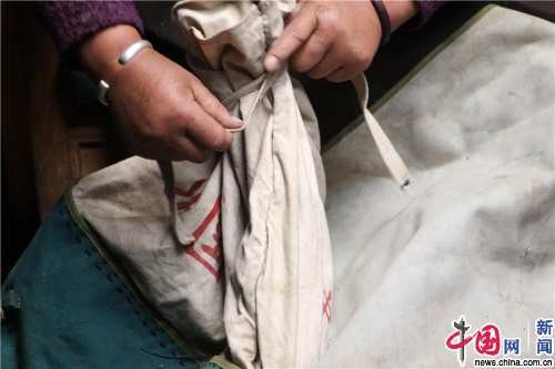 这个邮包是白玛江才的第三个邮包,“第一个邮包早就破烂不堪了。”白玛江才说。中国网记者 吴佳潼 摄
