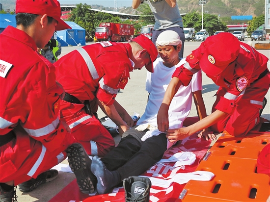 7日至13日防灾减灾宣传周期间,全省各地开展形式多样的主题宣传活动。图为急救演练。