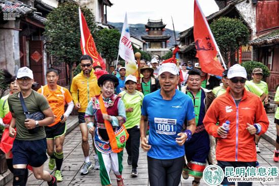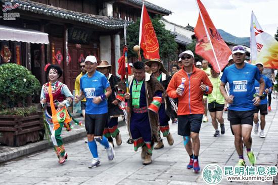 昆明信息港讯 实习记者杨泞卉 6月4日,“七彩云南·秘境百马”在大理巍山迎来第十七站分站赛事。2016中国马拉松年度人物李小白、陶瓷跑者艺术家李淳、2017第二轮世界马拉松六大满贯赛事完成者邱小斌、马拉松运动达人张承参与领跑;同时来自巍山、祥云等地的160多位跑友来到现场为金飞豹助跑。