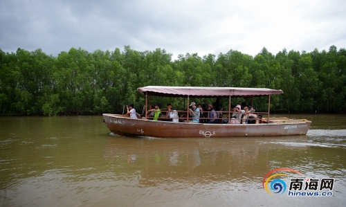 记者在海南东寨港国家级自然保护区采访。南海网记者刘洋 摄