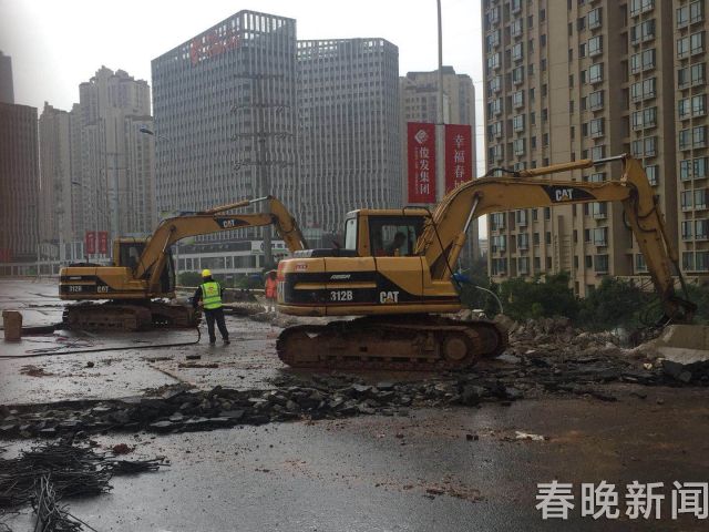 南二环西段大观河桥至官南立交桥上、下层全幅封闭施工后,施工单位施工设备、材料陆续进场,采取交叉作业的办法,冒雨开展了路灯、弱电管线、交安设施的拆除以及地面层隔离墩的破碎工作。与此同时,施工单位于6月23日开始试验性的拆除高架桥上层梁板两片。从拆除下来的梁板内部构造看,旧梁板内部裂缝比早前检测更长,原梁板优化设计使用的钢筋、混泥土规格、标号偏低,经过二十年的碾压和超载车辆破坏后,已经极易破碎,其承载力比原检测结果更令人堪忧,安全隐患极大,南二环提升改造工程势在必行。