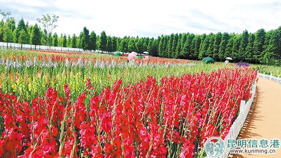 昆明信息港讯(昆明日报 记者缪亚平)本周末,度假区捞渔河湿地公园29万株从荷兰进口的唐菖蒲正处于盛花期,花期将持续20余天,市民可前往观赏。