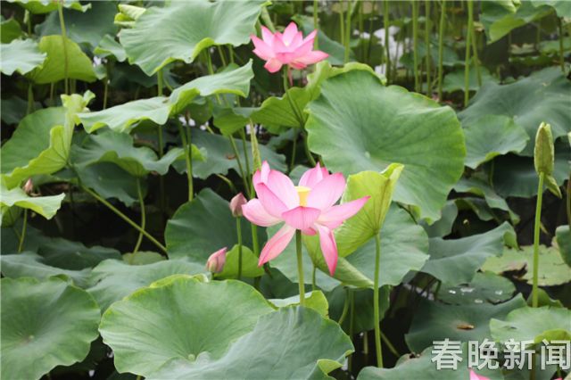 荷花造型也是一大亮点,《鱼戏莲叶》《莲•我》《中国结》《不忘初心》《出水芙蓉》《双凤朝阳》《水莲云天》等一系列荷花造型组的加入,6000余盆缸栽荷花造型展也给本届花展增添了不一样的观赏乐。
