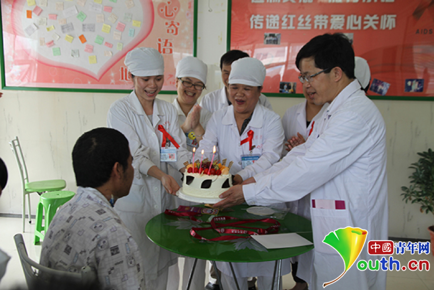 杜丽群和同事们一起给艾滋病患者过生日。广西南宁市第四人民医院供图