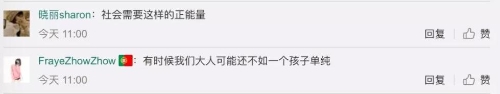 部分网友还留言:“暖男一枚,给大人好好上了一课”、“谢谢温暖的好孩子,我们成年人要向你学习。”