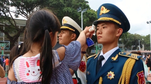 香港市民为解放军打伞,