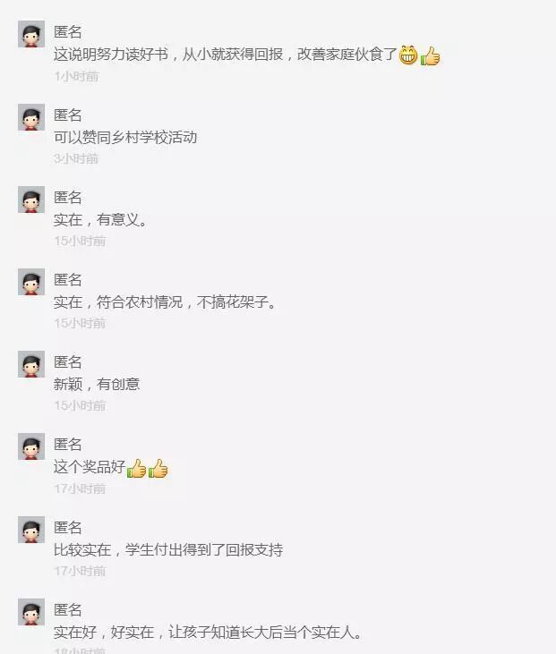 目的是想通过此举加强家校互动,引起家里人重视孩子学习,所以奖品发得实在些。