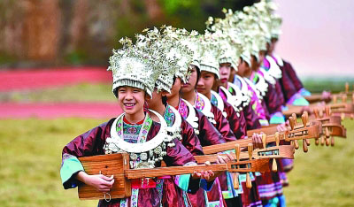 广西三江侗族自治县聘请民间师资到校开设“非遗学堂”,丰富中小学生文化生活,促进非遗技艺代代相传。图为学生们在弹唱侗族琵琶歌。新华社发