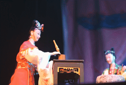 除了这些,木偶演员还要有“一心两用”的特殊技能,也就是一个人操纵两个木偶,一人饰演两角。例如左手饰演旦角,右手饰演小丑,一旦一丑互相配合。这就要求演员不仅是表演上的区分,而且在唱、练、语言的声色变化上都要同步进行,做出开打、武打等动作。就这样,蔡美娜和她的同事们把仅有一个表情的木偶赋予了千变万化的动态,每一个木偶的喜怒哀乐都在他们的声音变化中体现出丰富的情感变化,带给观众多重视听享受。