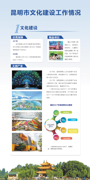 当前,昆明市共建有国家级、省级、市级文化创意产业园区21个,文化创意与相关产业融合发展示范基地4个。