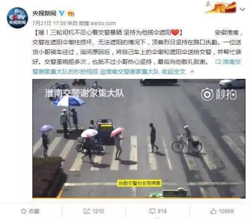 执勤交警也是十分感动