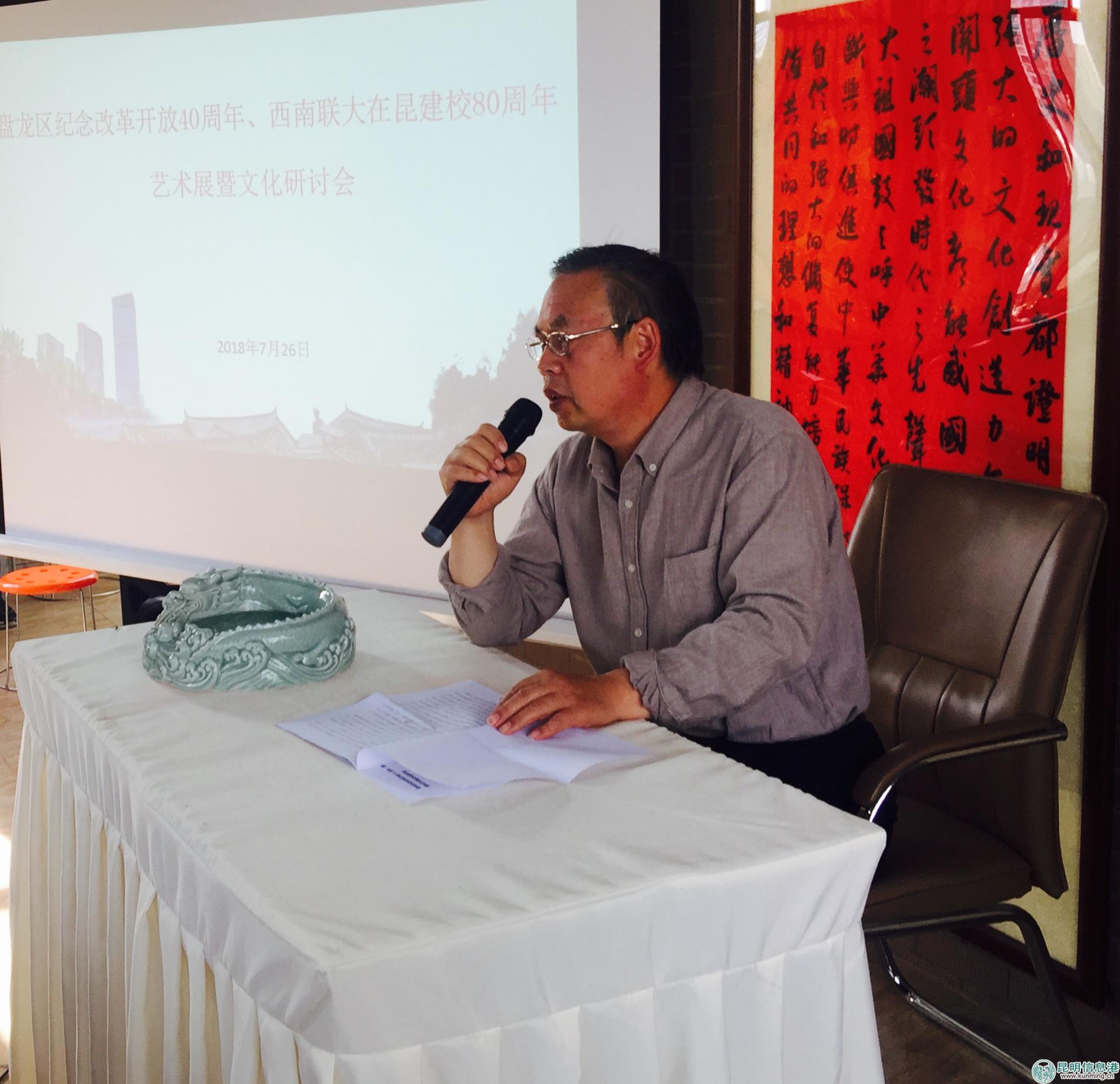 昆明信息港讯 7月26日下午,主题为“芳华正茂﹒盘龙如歌——向开拓者致敬” 盘龙区庆祝改革开放40周年、西南联大在昆建校80周年艺术展,在龙泉古镇文化研究院隆重开幕。