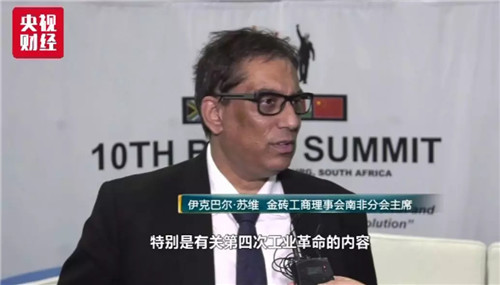 金砖工商理事会 南非分会主席 伊克巴尔·苏维:习主席的讲话非常好,特别是有关第四次工业革命的内容, 深化金砖国家之间的合作。他还指出这是金砖国家的金色十年,我非常同意,我认为习主席的讲话是本次金砖峰会上最令人鼓舞的,特别是对工商界来说,我认为金砖国家工商界的合作将继续加深。