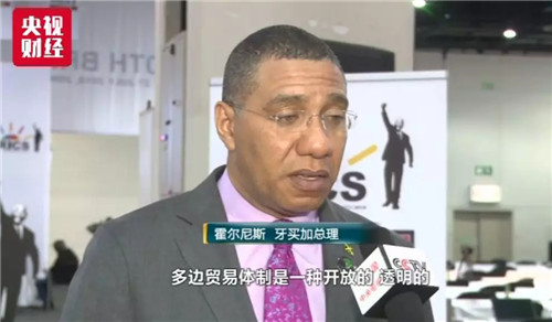 牙买加总理 霍尔尼斯:多边贸易体制是一种开放的、透明的、可预期的国际贸易体制,习主席的讲话中强调多边贸易体制的重要性,这是我们感兴趣并且坚定支持的事情。