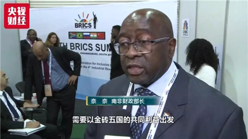 南非财政部长 奈奈:习主席讲话的重要信息是我们需要团结协作,需要从金砖五国的共同利益出发,同时也要提醒自己,不要在世界的第四次工业革命的弯道中落后,并且我们还要保持观点一致,坚定地捍卫正在受到挑战的多边主义。