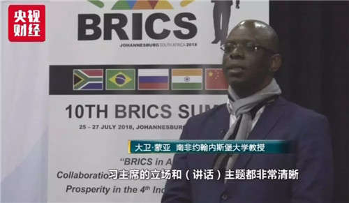 南非约翰内斯堡大学教授 大卫·蒙亚:习主席的立场和讲话主题都非常清晰,首先是没有人能在贸易战中获利,我们支持贸易、支持自由贸易、共谋繁荣,这也是本次金砖峰会的主题。