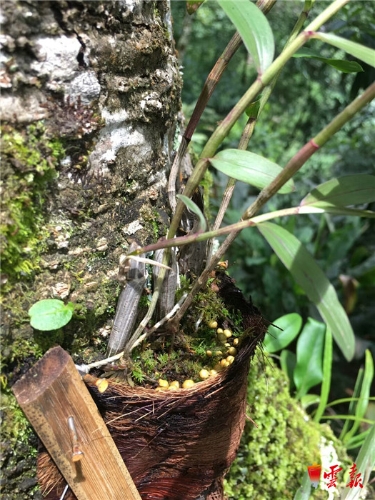 7月17日开始,马吉米村全体工作队员分小组负责,工作在马吉米村各个小组石斛种植户的林间。如何固定石斛苗,怎样正确放基质,如何科学管理石斛……一棵棵石斛苗被稳固的绑在了水冬瓜树上。