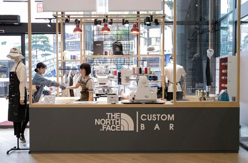 韩国户外品牌The North Face 的明洞旗舰店一楼已经不是常规的卖场,而是变成了消费者的体验空间。“定制吧”是将消费者们喜爱的大写字母或语句印在衣服上,或者在衣服上粘上布贴标志的定制体验空间。考虑到明洞店游客众多,因此也提供汉语、日语、英语、法语等外语文字图案的服务。该公司相关人士表示,一位中国顾客购买了50件T恤衫用于赠送礼物,由此可见,公司的此种营销方式赢得了很好的反响。