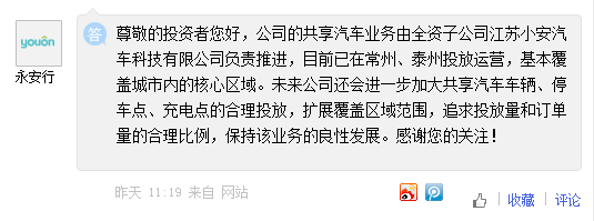 前天(8月8日),共享单车服务品牌永安行(603776.SH)在上证e互动平台上表示,“公司的共享汽车业务由全资子公司江苏小安汽车科技有限公司负责推进,目前已在常州、泰州投放运营,基本覆盖城市内的核心区域。未来公司还会进一步加大共享汽车车辆、停车点、充电点的合理投放”。在不少业内人士看来,这是资本催生“风口”转换的一个缩影。