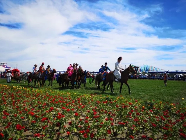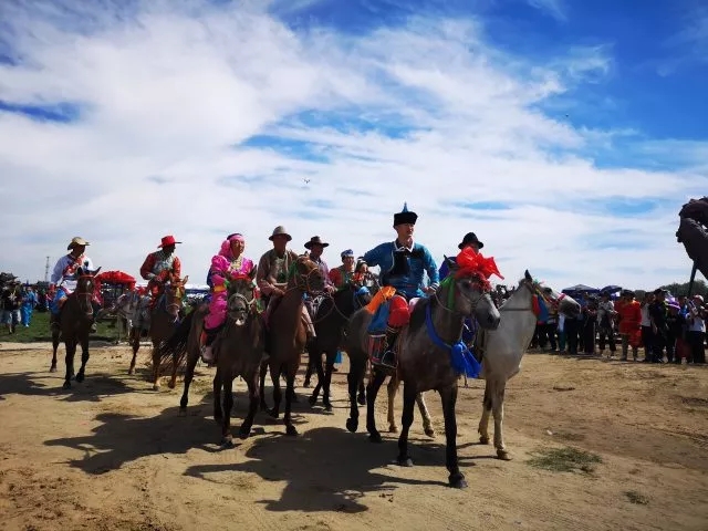 在家族长的一声长令下,迎新马队依次出发,哒哒的马蹄声回响在草原山谷,哒哒的马蹄声带着喜悦向幸福出发。