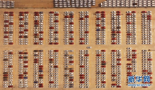 重庆果园港内停放着等待运输的汽车(8月20日无人机拍/摄)。